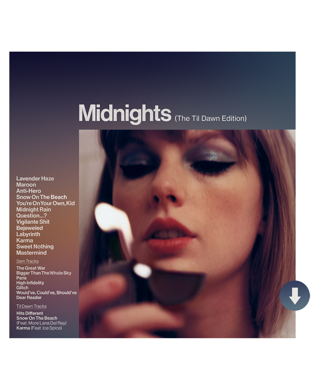 A digital copy of Taylor Swift’s Midnights (The Til Dawn Edition) album will be sent to the email address supplied at checkout. Please note. digital downloads are not available to customers outside the U.S. Digital downloads are delivered as MP3 44.1kHz/320kbps audio files.