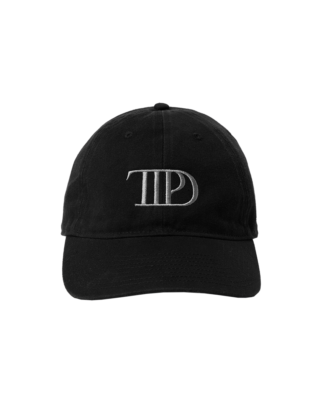 Black hat featuring TTPD album logo embroidered on hat.